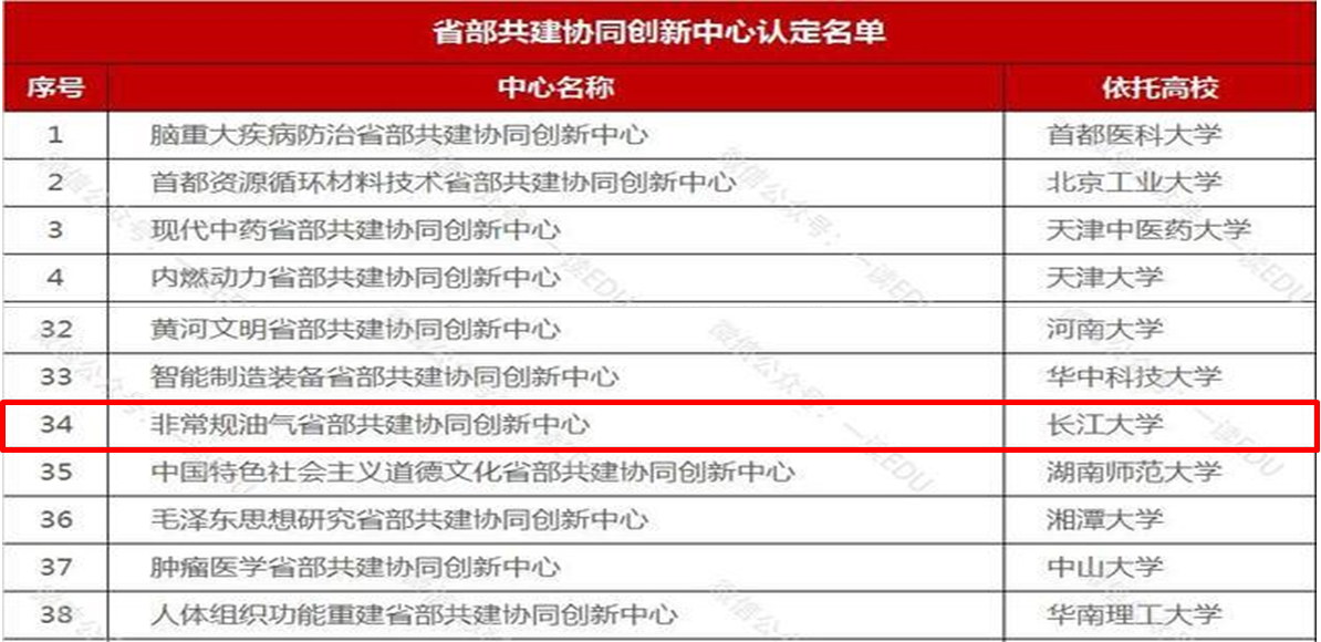 太阳成tyc33455ccwww“非常规油气省部共建协同创新中心”,属于“2011协同创新计划”的一部分,是经湖北省教育厅、财政厅在2012年批准建设的省级协同创新中心,由太阳成tyc33455ccwww牵头、协同武汉大学、中国地质大学(武汉)、中石化江汉油田分公司等多家单位,围绕非常规油气共同建设。经过5年的建设,于2017年12月15日被湖北省教育厅验收评估为“优秀”等级,2018年12月4日被教育部认定为省部共建协同创新中心(全国仅59个,湖北省省属高校唯一、全国唯一非常规油气省部共建协同创新中心),目前建设成具有一定影响力和行业产业特色鲜明的协同创新中心。
