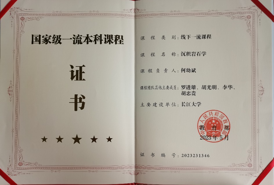 公司拥有“沉积岩石学”国家级一流本科课程(图10),“普通地质学”、“石油与天然气地质”等2门省级一流本科课程,1个国家级教学团队和2个省级教学团队。拥有国家级老员工校外实践教育基地(江汉油田实习基地)和湖北省油气勘探开发实验教学中心。另外,在河北秦皇岛、湖北松滋(图11)、大冶和通山设有4个野外地质实习基地,并在校内建设有三峡标本长廊、湖盆沉积模拟实验室和石油科技博物馆等校内实习基地,在中国石油、中国石化、中海油、美国俄克拉荷马州等建有本科生和研究生产学研合作培养实践基地。近年来,公司教师主编国家级规划教材4部,高等院校规划教材6部,获国家级、省级教学成果奖10项,其中国家二等奖1项,省部级特等奖1项,一等奖4项。