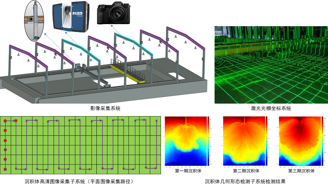 检测系统国内领先。有沉积体几何形态检测子系统、全局影像采集子系统、沉积体高清图像采集子系统、沉积模拟大数据管理与可视化子系统、数据采集控制与处理子系统等,能实现沉积体表面与剖面多幅图像自动拼接、沉积体表面图像立体化和沉积体三维重构(图26)。