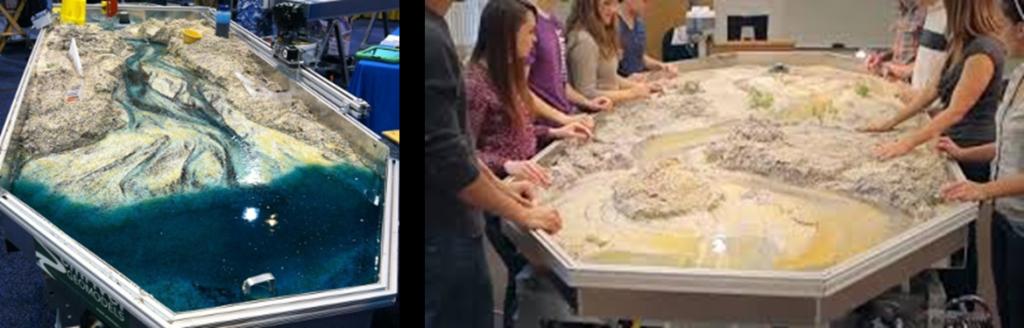 Table stream(图34)是一个将沉积模拟平台缩小到台球桌大小的沙盘模型,配有小型的供水系统、沉砂池和砂子、砾石等,可通过动手操作向中小员工科普河流湖泊的演化过程及沉积模拟的相关知识,培养其对沉积学的兴趣。