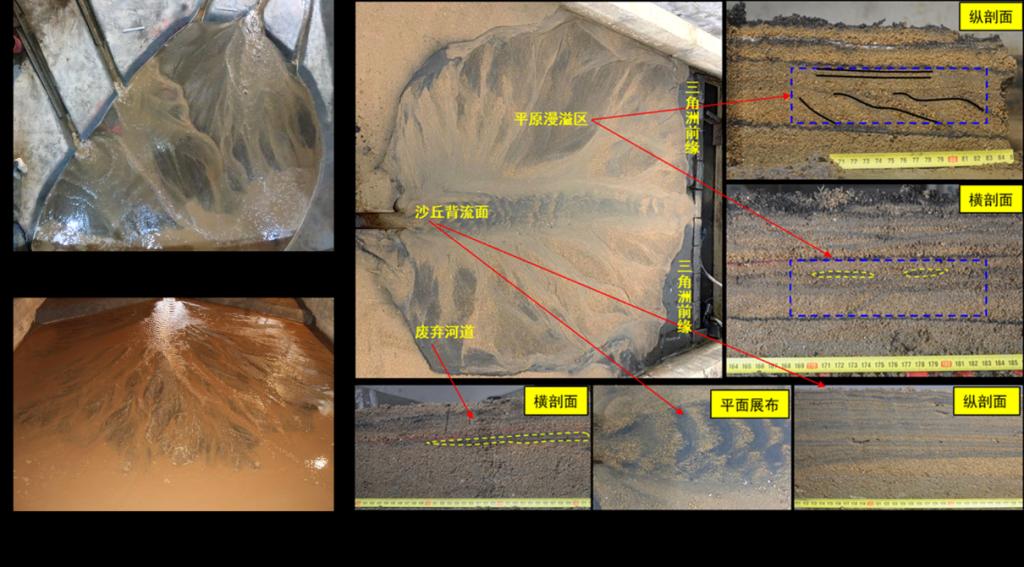 承担过大庆油田、胜利油田、大港油田、长庆油田、新疆油田等的横向科研项目百余项,承担国际自然科学基金50余项,解决了油田勘探开发过程中一系列理论和生产问题,如退覆式浅水扇三角洲沉积模拟、大面积砂岩的形成机理研究、浅水三角洲的形成机理研究、砂质碎屑流的沉积演化过程、陆源有机质的沉积模拟、细粒沉积的沉积机理与分布等(图28)。