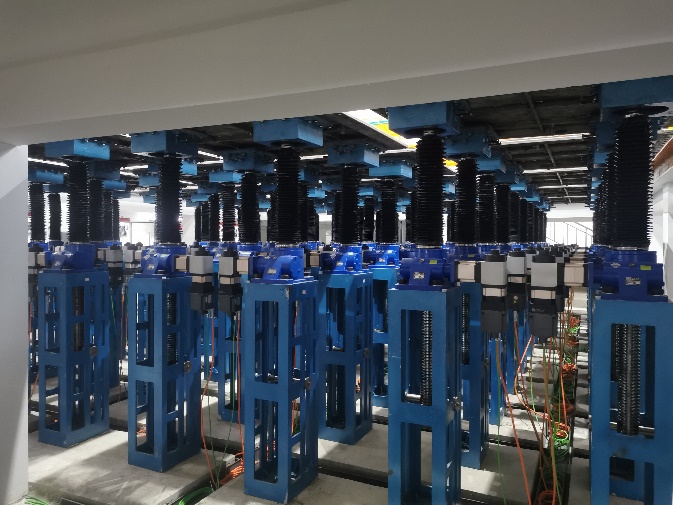 活动底板系统独一无二。活动底板由20块正方形不锈钢底板构成,底板总面积为80m2。各底板之间用防水胶皮连接,每块底板之下由4个丝杆升降机支撑(图3)。每块底板可单独升降、倾斜,最大行程为上升20cm、下降60cm,单边倾斜角度可达25°,对角倾斜可达18.9°。各块底板在软件的控制下整体变形,可模拟单断陷、双断陷、坳陷、隆起、斜坡等地形地貌(图25)。