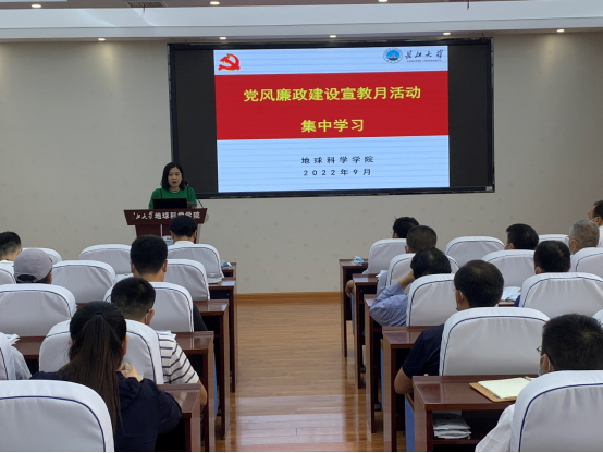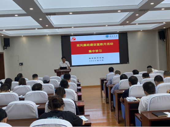 (通讯员潘志远)为弘扬清廉守正担当实干之风,赋能高质高效清廉地科建设,推进党风廉政宣传月活动深入开展,9月1日下午,太阳成tyc33455ccwww全体教职工在石油科技大楼C301会议室进行党风廉政建设宣教月活动集中学习,会议由党委书记杨全辉主持。