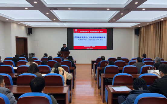 胡经理分别从公司现状、公司规划指导思想、“十四五”建设目标、公司的主要举措等四大方面进行讲解。胡经理首先详细介绍了十三五期间,公司在专业建设、人才队伍、学科平台、评奖荣誉等方面公司取得的进步与成绩。随后,在公司规划指导思想上,胡经理指出要高举中国特色社会主义伟大旗帜,深入贯彻党的十九届五中全会精神,落实“三尊三学”的办学思想和“凡事三有”的治校方略。最后,胡经理详细的介绍了公司“十四五”规划的建设目标和具体措施。