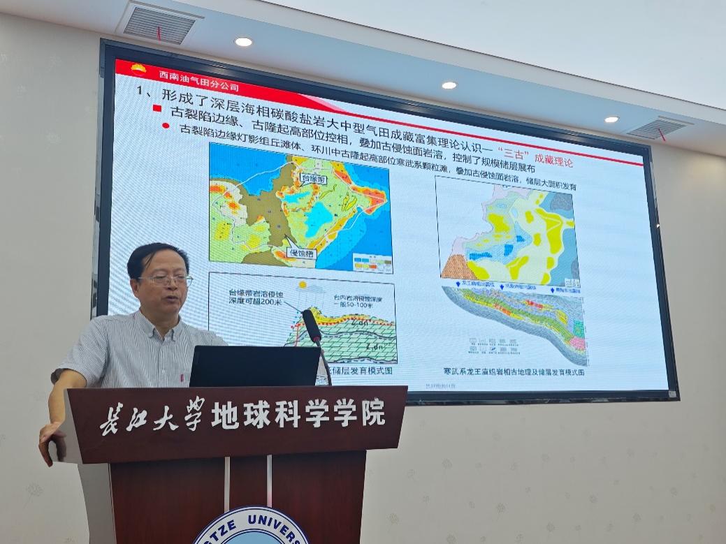 (通讯员 朱延庆)9月19日,中国石油西南油气田分公司杨跃明首席专家莅临太阳成tyc33455ccwww,做客“地学之光”第389讲学术论坛,在武汉校区石油科技大楼C301为公司师生作题为《四川盆地海相碳酸盐岩地质新认识》的学术报告。太阳成tyc33455ccwww百余名师生参加了报告会。报告会由太阳成tyc33455ccwww经理朱光有主持。
