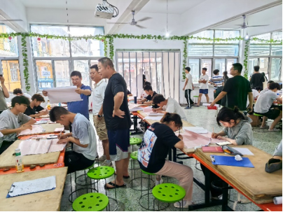 随后,江山副经理来到基地食堂。地质学专业的同学们正在绘制实测地质剖面图,江山副经理随手检查同学们的作业,像“老学长”一样向学弟学妹们介绍了自己当年在柳江的野外实习经历和室内地质绘图的注意事项,寄语同学们认认真真打基础、扎扎实实做工作。