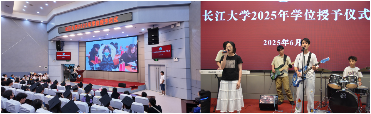 (通讯员 王佳雯)6月16日15时10分,2025届毕业生学位授予仪式在石油科技大楼学术报告厅举行。师生、亲属齐聚一堂,共同见证400余名毕业生学位授予的重要时刻。 伴随着热烈的掌声,导师代表依次上台就坐。副经理胡忠贵教授宣读学位授予文件,10名博士毕业生、157名硕士毕业生、302名本科毕业生通过公司各部门研究决定分别被授予了博士学位、硕士学位和学士学位;公司常务副经理吴楠教授、教学指导委员会主任何幼斌教授、学术委员会主任李少华教授分别为获得博士学位、硕士学位和学士学位的员工拨穗颁证,现场师生、亲属代表共同见证着同学们从青涩到成熟的蜕变。 授予仪式后,现场的大屏幕上播放《毕业心声》纪念视频,回顾了这四年课堂研讨、野外勘测等求学场景。22级学弟学妹,Oll korrect OK乐队带来的《我们的明天》将气氛推向高潮。现场瞬间化作一片合唱的海洋,绘就一幅同声欢唱画面。 “汇入长江,奔向大海”标语寄托着毕业生对未来的期待,未来或许有暗礁湍流,有迷雾险滩,但他们眼中的光、心中的火,必将照亮逐梦之路,在时代的浪潮中书写属于自己的壮阔篇章。毕业生范秀武满怀感恩地说:"感恩公司的悉心培育,感谢老师的谆谆教诲、同学的携手相伴。新征程已启,我将在地质勘探的道路上步履不停,解锁黑色黄金蕴藏的密码!” 21级班主任代表刘远刚、赵少卿、朱亚玲老师及学工办全体成员也参加了学位授予仪式。 (编辑 姚佳 审核 冯舒)