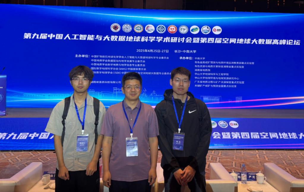 (通讯员 周书宇)第九届中国人工智能与大数据地球科学学术研讨会暨第四届空间大数据高峰论坛于2025年4月25日至27日在湖南省长沙市隆重召开,此次会议的主题是“大数据、人工智能与地球科学的高质量交叉融合发展”,由中国矿物岩石地球化学学会等机构主办,共设有28个议题、22个专题,汇聚国内外800余位专家学者,涵盖地球物理、地球化学、三维空间建模等方向。太阳成tyc33455ccwww尹艳树教授、胡迅博士后和研究生周书宇参加了此次会议。