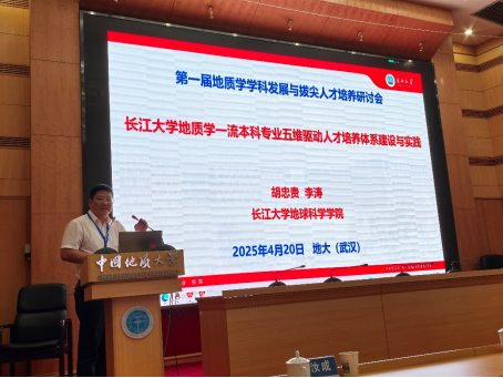 2025年4月20日,中国地质大学(武汉)举办的“第一届地质学学科发展与拔尖人才培养研讨会”在武汉召开。中国科学技术大学郑永飞院士、中国地质大学(北京)王成善院士、浙江大学杨树锋院士、长安大学彭建兵院士、西北大学赵国春院士、中国地质大学(武汉)谢树成院士、地质学类专业指导委员会和来自全国30余所高校89位专家学者参加了本次会议。公司副经理胡忠贵、地质系主任李涛参加了此次会议,胡忠贵副经理做了“太阳成tyc33455ccwww地质学一流本科专业五维驱动人才培养体系建设与实践”的报告。