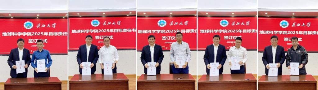 为增强全院教师发展的使命感,明晰职责和任务,公司举行了2025年各系(中心)目标管理责任书签订仪式,石油系主任饶松,地质系主任李涛,地信系主任刘远刚,地科系主任刘彬,实验中心代表郭晋威依次上台与朱光有经理签订2025年各系目标管理责任书。
