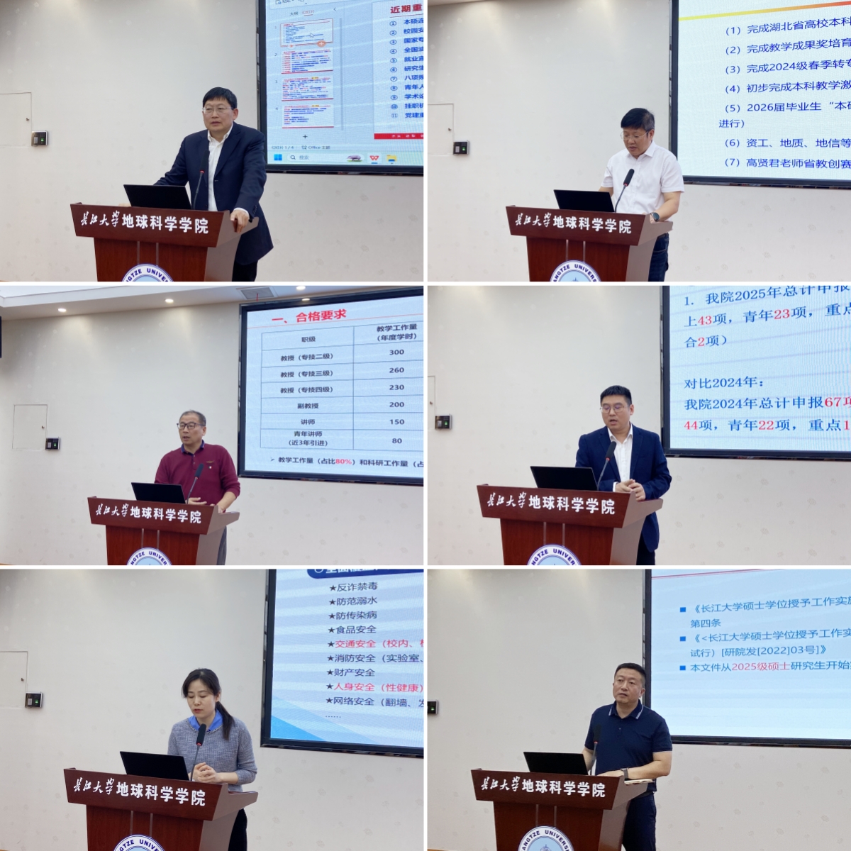 副经理胡忠贵通报了近期湖北省高校本科专业监测评估工作,教学成果奖培育项目申报,2024级春季转专业,本科教学激励制度建设,2026届毕业生“本硕博贯通培养拔尖创新人才计划”选拔工作,资工、地质、地信等专业实验班选拔及分流,省教创赛和省青教赛备赛等工作的完成情况和进展,对2024~2025学年第二学期期中教学检查相关工作做出了部署。