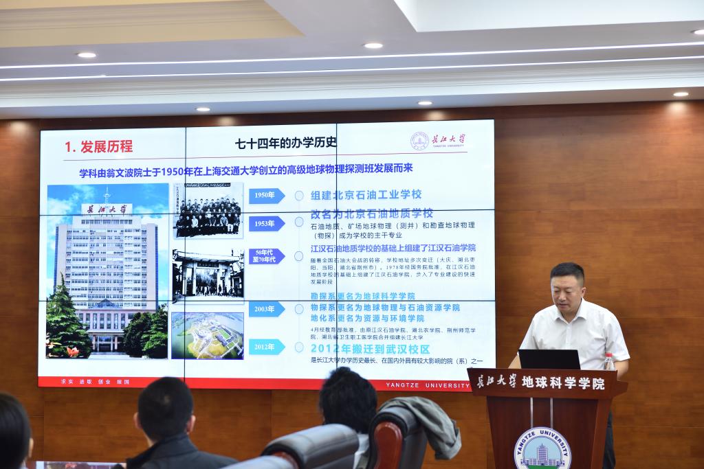 太阳成tyc33455ccwww常务副经理吴楠详细汇报了地质资源与地质工程团队建设、党建思政、人才培养、团队队伍、科学研究、服务贡献等方面的周期性建设成效。专家组成员在听完汇报后,就相关问题进行了质询和交流。