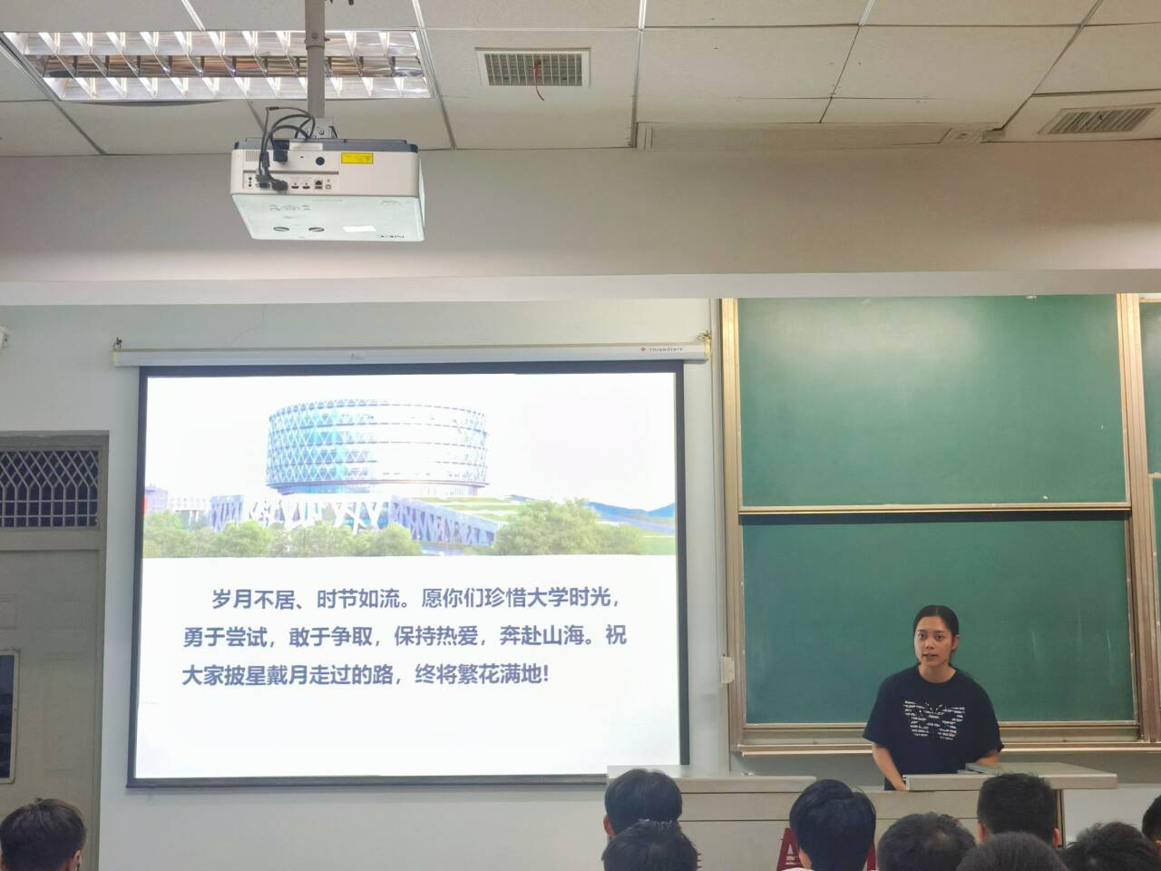 优秀员工代表蓝婉嫣通过自身经历向学弟学妹们传授学习经验,从大一基础课程学习的重要性到如何合理规划老员工活。鼓励同学们在大学四年中勇于尝试、敢于争取、保持热爱、奔赴山海!