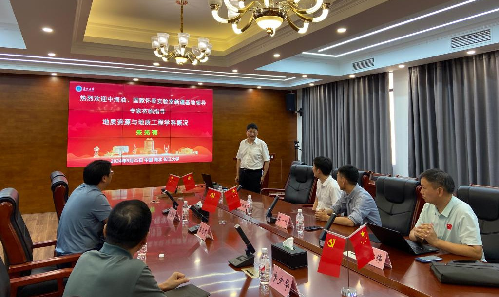 (通讯员 韩静)2024年9月25日,中海石油(中国)有限公司上海分公司研究公司党委书记、经理蒋一鸣、国家怀柔实验室新疆研究院人力资源处高级主管周晓东、科研团队骨干蒋宏伟来院交流访问,座谈交流会在武汉校区石油科技大楼C201会议室举行,经理朱光有、公司党委书记杨全辉和李少华教授出席会议,座谈会由经理朱光有主持。