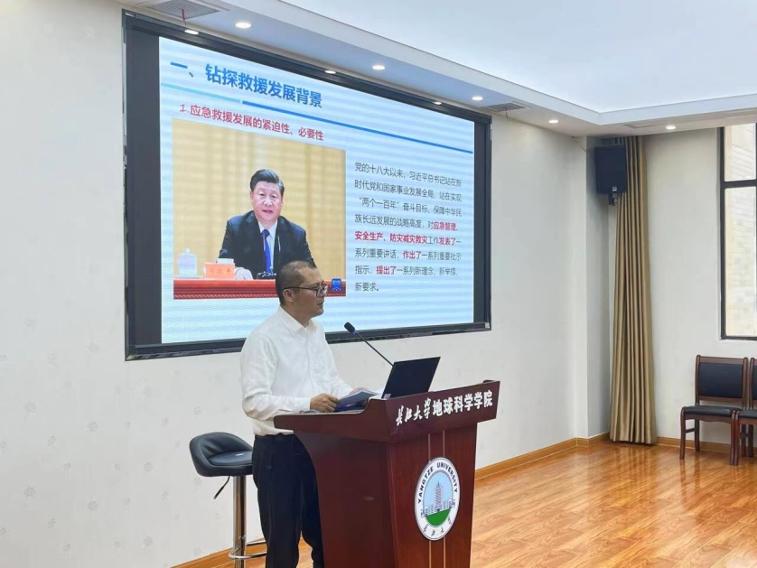 肖明国员工以“矿山灾害钻探应急救援技术现状与发展趋势”为题,运用丰富的救援案例,结合自身的救援经历给公司师生上了一堂生动的生命教育课和思政课。他从钻探救援发展背景、钻探救援关键装备与技术、钻探救援存在问题和钻探救援创新发展趋势4个方面进行了详细讲解,他表示,党的二十大开启了中国式现代化新征程,保障国家能源资源安全关乎国计民生和国家安全,是时代赋予我们地质工作者的崇高使命和重大责任,在国家大安全观思想和新一轮找矿突破战略行动的指引下,新时代“地质报国”大有作为。他寄语地科学子胸怀国家能源资源安全“国之大者”,仰望星空、脚踏实地,让青春在保障国家能源资源安全、全面建设社会主义现代化国家的火热实践中绽放绚丽之花。