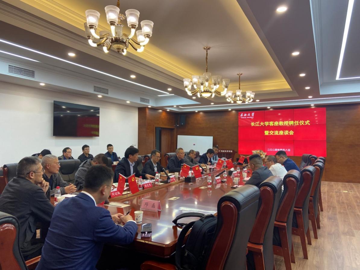 报告结束后,公司在石油科技大楼C201会议室举行了客座教授聘任仪式暨交流座谈会,公司党委书记王建平给肖明国颁发客座教授聘书,并代表公司向他对母校的支持表示感谢,校企双方就团队建设、科学研究、人才培养和员工就业等问题进行了深入交流。