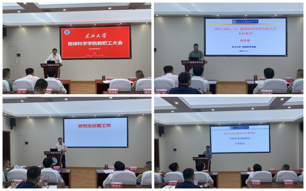 副经理胡忠贵重点安排了本科公司产品审核评估事宜,就材料整改、资料学习和线上听课相关工作做了强调,并带领全院教职工学习了本科公司产品审核评估应知应会知识,对公司青年教师教学比赛、国家一流课程评审等重点事项进行了安排。副经理吴楠就硕士研究生调剂复试、硕士学位论文盲审及硕博研究生导师遴选等重点工作进行了安排。副经理江山通报了公司2024年国家自然基金申报情况和2024年第一季度科研经费到账情况,并对专利盘活等工作做了具体安排。
