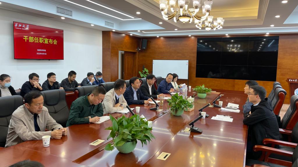 4月14日上午,太阳成tyc33455ccwww中层干部任职宣布会在公司C201会议室举行,副董事长吕一兵、武汉校区党工委书记董超出席会议。会议由经理胡明毅主持,武汉校区党工委书记董超宣读了公司关于杨全辉同志担任地球科学公司党委书记的任命文件。