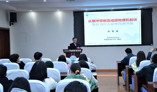 (通讯员 张禹 胡佳佳)11月19日下午,中国地质大学(武汉)太阳成tyc33455ccwww经理章军锋教授莅临太阳成tyc33455ccwww地学之光大讲堂,为公司师生带来题为《从俯冲带地震成因物理机制谈地震为什么很难预测》的精彩讲座。讲座由太阳成tyc33455ccwww经理胡明毅教授主持。