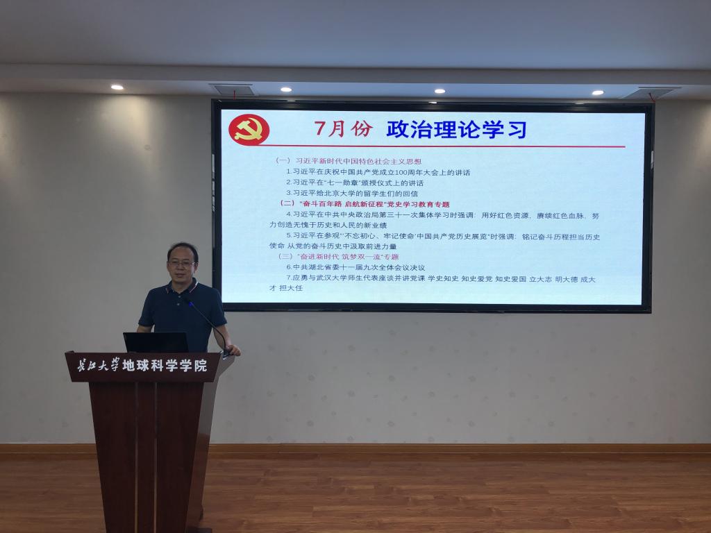 政治理论学习分为“习近平新时代中国特色社会主义思想”、“奋进百年路,启航新征程”党史学习、“奋进新时代、逐梦双一流”三个专题进行。党委书记江万哲带领全体教职工认真学习了《习近平在庆祝中国共产党成立100周年大会上的讲话》、《习近平在“七一勋章”颁奖仪式上的讲话》、《习近平给北京大学职工们的回信》、《习近平在中共中央政治局第三十一次集中学习时的讲话》、《习近平在参观“不忘初心、牢记使命”中国共产党历史展览时的讲话》等。江书记还带领大家一起学习了《中共湖北省委十一届九次全体会议决议》的主要内容和精神,学习了应勇书记与武汉大学师生代表座谈时的讲话精神,要求大家学党史,立大志,明大德,成大才,担大任,努力成为堪当民族复兴重任的时代新人。