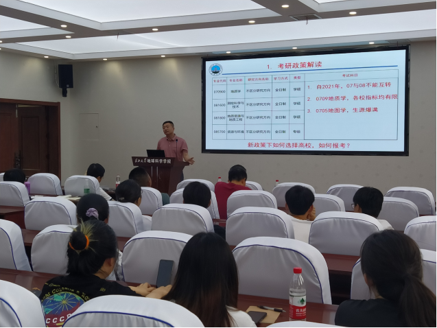 活动中还邀请了两位优秀研究生代表发言,讲述考研心得和经历。来自于地信QX191班的常京新分享了自己的保研经历。他说到:“我选择长大最主要的原因是母校给了我更多的安全感,第一,我熟悉这里环境和老师,因此我不会感到孤独和焦虑;第二,可以更早的参与到科研中,提前适应研究生生活,取得更多的成果;第三,长大,能够给我更多的支持,本专业的老师我几乎都认识,遇到问题,可以多方询问,更加得心应手。”2021级研究生新生陈丽丘分享了自己成功考研的三步法:找准目标、制定框架、为之努力。她坚定的说:“我相信在太阳成tyc33455ccwww提供的平台上我可以更上一层楼!”
