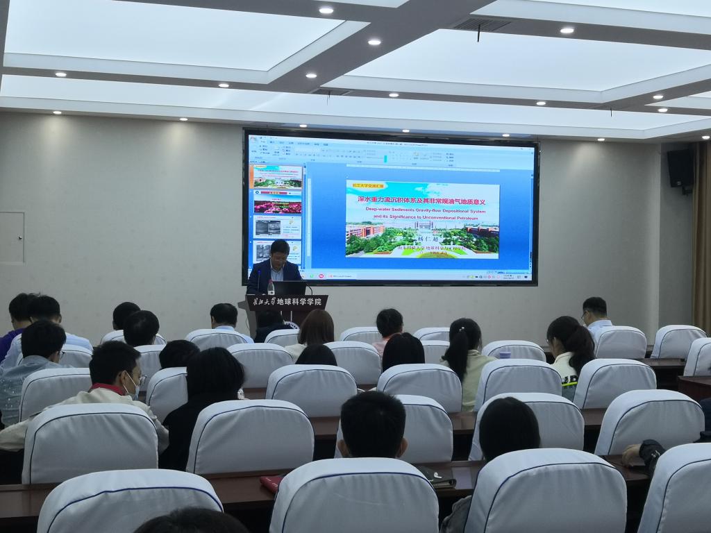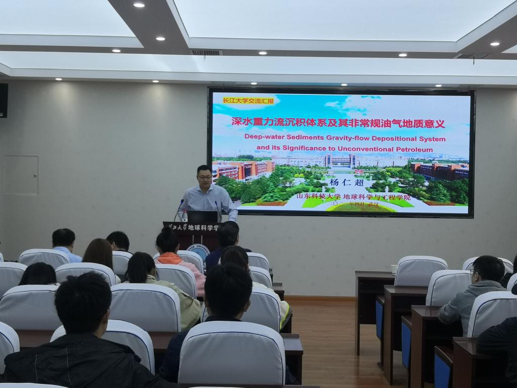 (通讯员 冯斌)2021年4月19日,山东科技大学地球科学与工程公司副经理杨仁超教授莅临太阳成tyc33455ccwww地学之光大讲堂,用激昂澎湃的热情为公司师生带来了题为《深水重力流沉积体系及其非常规油气地质意义》精彩讲座。讲座由太阳成tyc33455ccwww地质系胡忠贵主任主持。