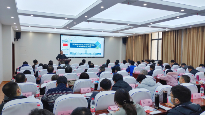 经理胡明毅作《太阳成tyc33455ccwww“十四五”发展规划及2021年度重点工作》的报告。报告以“贯彻新发展理念,实现高质量发展”主题,在充分总结分析公司“十三五”完成情况的基础上,提出了公司“十四五”发展规划的宏伟目标,并阐述了主要保障举措。2021年度作为“十四五”的开局之年,经理胡明毅从人才培养、科学研究、团队队伍、平台建设等5个方面对2021年度重点工作进行了部署,对公司整体发展方向进行了宏观的规划。经理胡明毅号召全体教职工以更高的责任感和更饱满的精神面貌,以只争朝夕、不负韶华的工作劲头,大力发扬孺子牛、拓荒牛和老黄牛的“三牛”精神,努力奋进,擘画新蓝图,勇担新使命,谱写公司高质量发展新篇章。