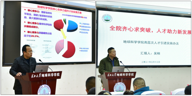 副经理韩登林和吴楠分别作《太阳成tyc33455ccwww核心竞争力提升计划》、《太阳成tyc33455ccwww高层次人才引育计划》的报告。这两个计划作既是“十四五”规划的有机组成部分,也是为实现“十四五”目标任务所采取的的具体保障措施。