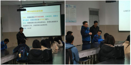 12月11日下午,公司副经理李强、实验中心副主任高达、地质系副主任赵少卿在实验楼A-314为18名同学开展竞赛动员,向同学们讲解竞赛规则以及下一阶段训练计划。