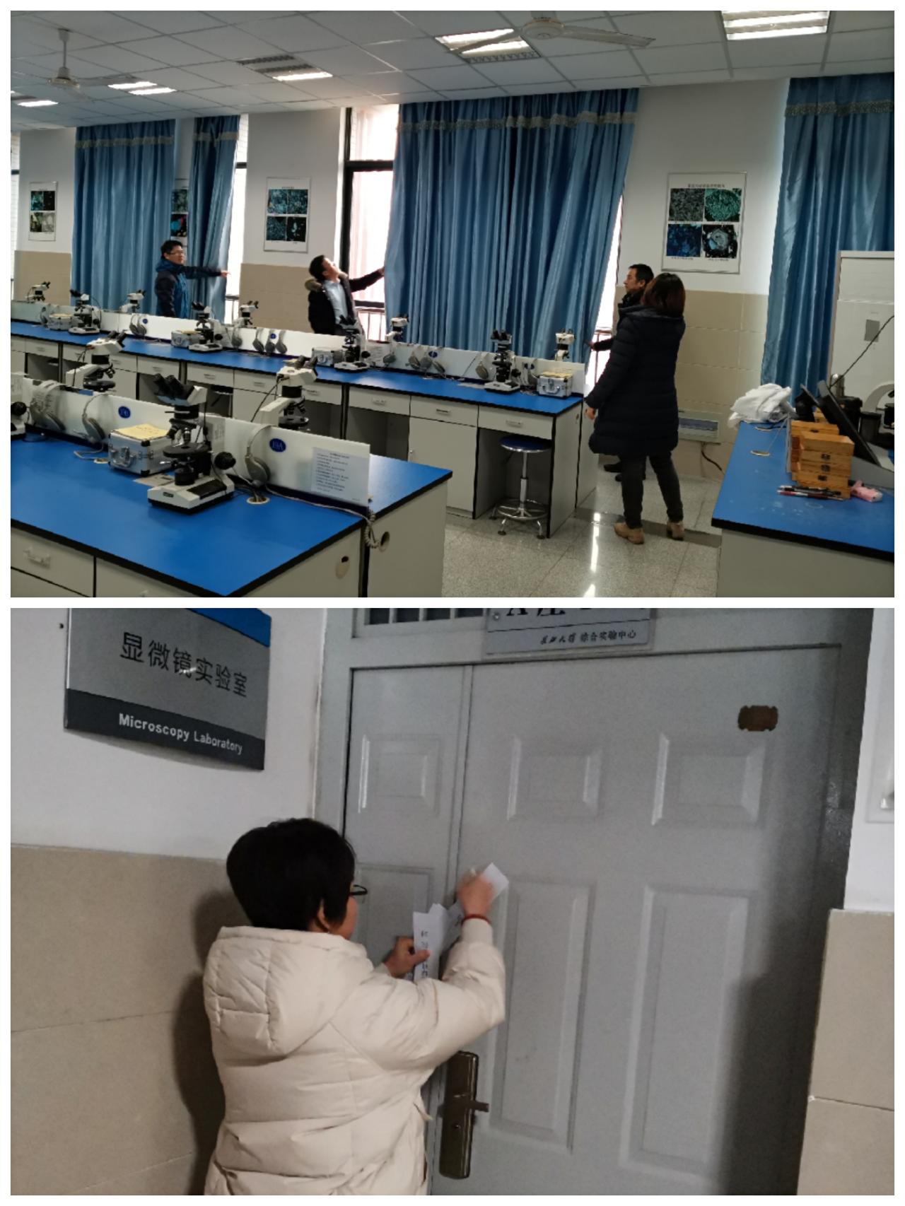 在之前自查的基础上,主管教学副经理李强,实验中心的副主任丰勇、高达以及实验中心的老师等一行于1月10日对实验室进行了放假前的安全大检查,包括教学实验室和科研实验室。由于公司寒假期间实验室均不开放,实验室人员对房间的水电,门窗都逐一检查,并关闭水源,锁好门窗,以防火灾或溢水事故的发生。对检查过程的发现的问题也及时反馈给武汉校区维修管理中心,确保下学期开学正常的实验教学秩序。最后对所有不开放的实验室都进行了贴封条处理。