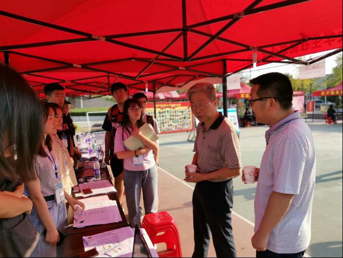 9月4日下午五点左右,张玉清董事长亲自莅临公司迎新处了解新生接待情况,与新生及现场工作人员亲切交流,为同学们的迎新工作加油打气。