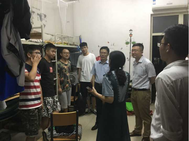 每走进一个员工宿舍,老师们都与毕业生们进行亲切交谈,仔细地询问毕业生们的考研、就业、生活等情况,并嘱咐考研成功的同学要好好深造,不断扩充知识,提高自身素质,为母校争光;鼓励准备就业的同学们要先就业再择业,勤奋踏实、不怕吃苦;同时也希望毕业生们有时间常回“家”看看,母校的大门随时为他们敞开。最后领导老师们还细心强调毕业生们要爱护公共设施,做到文明离校,尤其要注意离校期间的自身安全,提高安全防范意识。