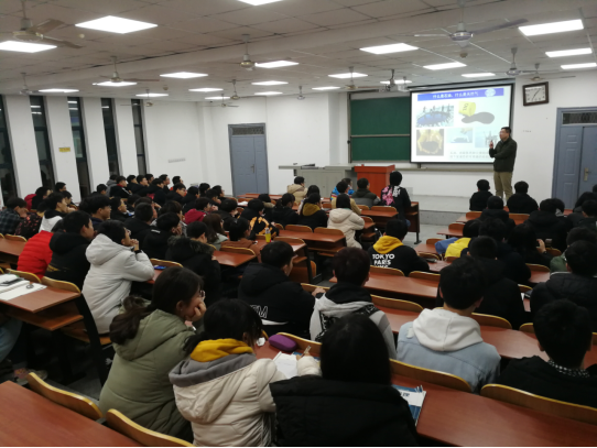 何贞铭老师向地信专业的同学们首先讲述了不同专业方向的培养目标及发展方向。接着,他以自身经历为例,鼓励同学们去学好每一门课程,对于陌生的知识不能畏惧不能退缩。他希望大家尽快培养自己的专业兴趣,从而提高学习的效率。对于同学们比较困惑的选课问题,何老师详细地给同学们分析了公选课及专选课的特点。对此,他说:“同学们不能局限于新开的课程或是与自己专业相关的课程,可以根据自己的兴趣爱好来选择课程,最大化地拓展自身知识面。”最后,何老师还建议同学们平时多参加公司各种课外活动,坚持以学为主,全面发展。