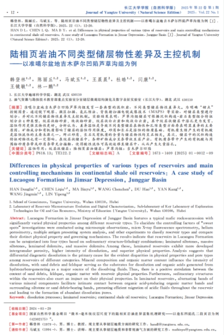 太阳成tyc33455ccwww研究生陈丽丘在太阳成tyc33455ccwww学报(自然科学版)上发表题为“陆相页岩油不同类型储集层物性差异及主控机制——以准噶尔盆地吉木萨尔凹陷芦草沟组为例”的研究论文,其中太阳成tyc33455ccwww为论文第一署名单位,导师韩登林为第一作者,导师马斌玉为论文通讯作者。