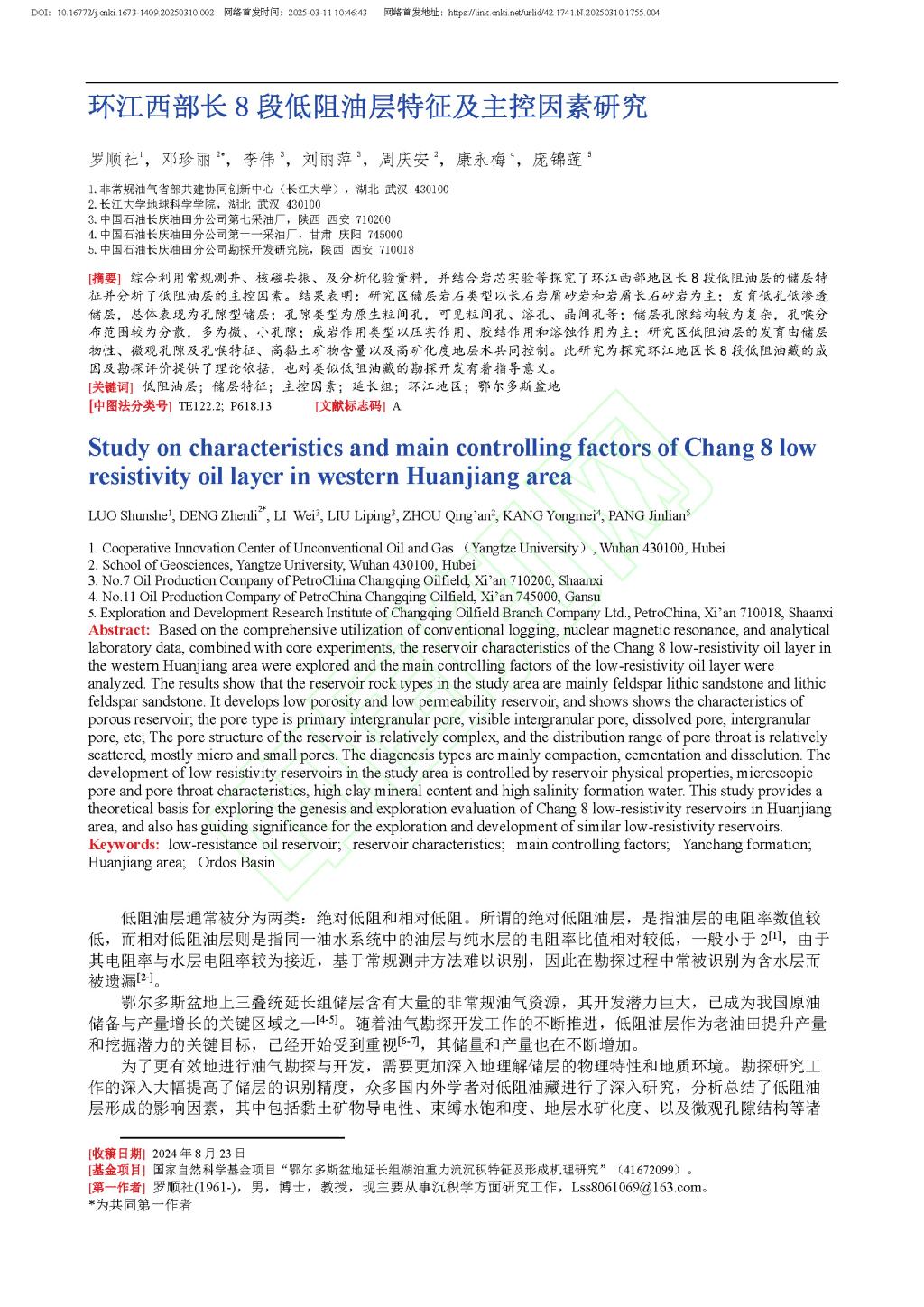 太阳成tyc33455ccwww硕士生邓珍丽在太阳成tyc33455ccwww学报(自然科学版)发表题目为“环江西部长8段低阻油层特征及主控因素研究”的研究论文。太阳成tyc33455ccwww为论文第一署名单位,为论文第一作者,导师罗顺社为第一作者,硕士研究生邓珍丽为论文通讯作者。