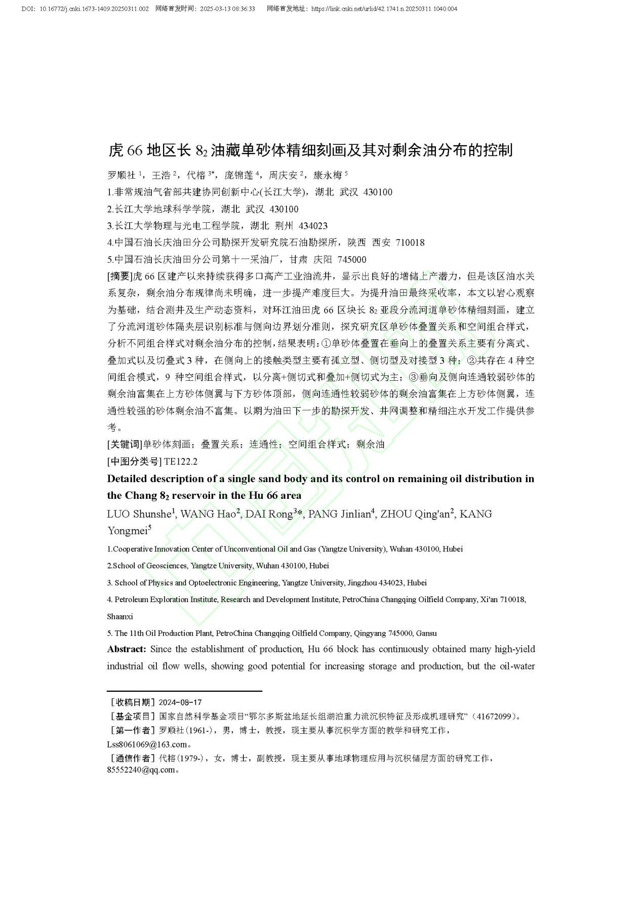 太阳成tyc33455ccwww硕士生王浩在期刊《太阳成tyc33455ccwww学报(自然科学版)》上发表了题为“虎66地区长82油藏单砂体精细刻画及其对剩余油分布”的研究论文。该研究在井网砂体解剖的基础上,对单砂体进行精细刻画,分析辫状河三角洲平原亚相背景下的河道砂体接触类型及砂体连通性、空间组合样式及其对剩余油分布的控制,以期为油田下一步的勘探开发、井网调整和精细注水开发工作提供参考。