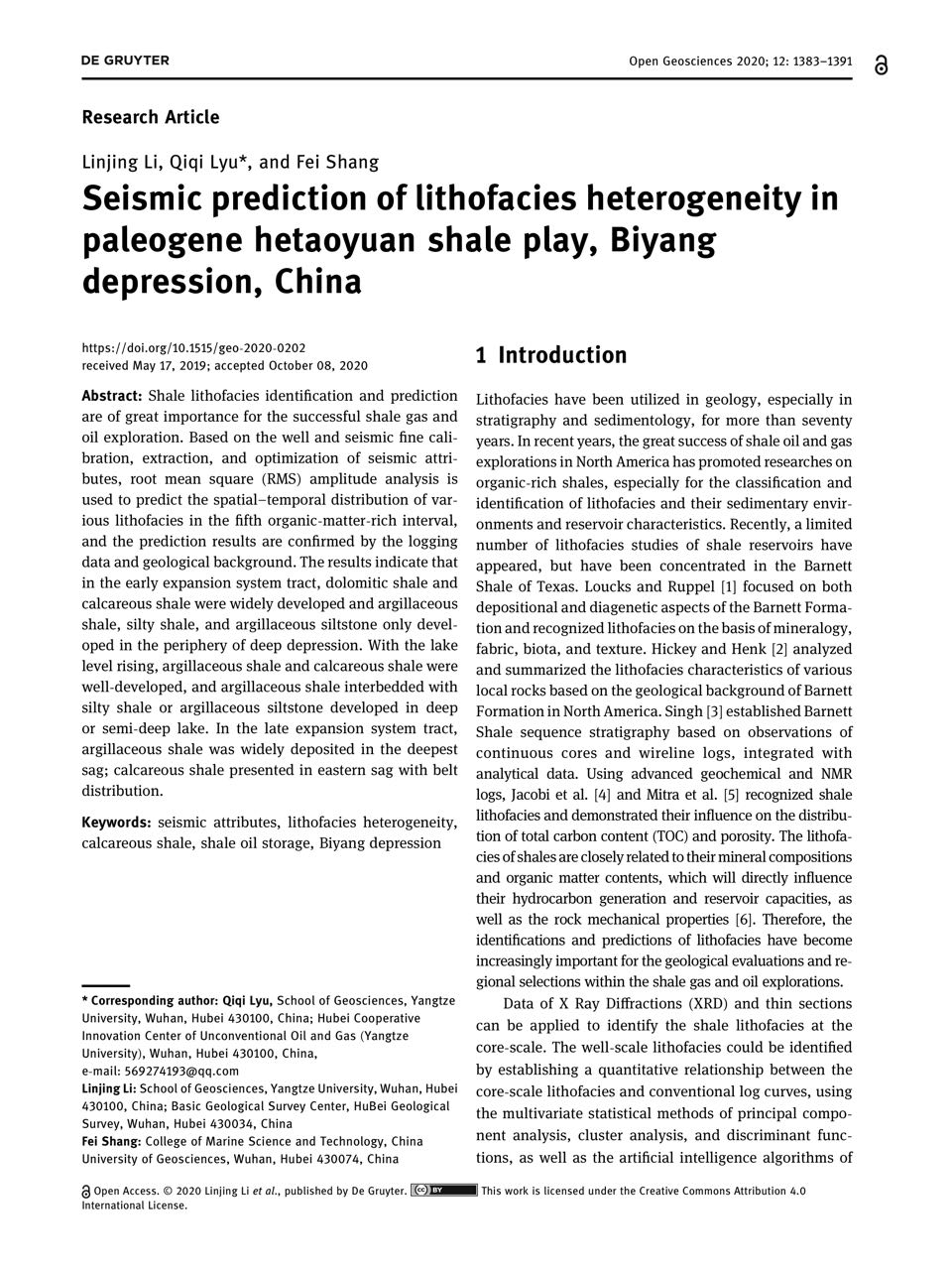 太阳成tyc33455ccwww地质系胡明毅教授团队长期从事储层沉积学及页岩气资源评价等方向的研究。团队成员李琳静博士在期刊《Open Geosciences》上发表题为《Seismic prediction of lithofacies heterogeneity inpaleogene hetaoyuan shale play, Biyangdepression, China》的研究论文,太阳成tyc33455ccwww为论文第一署名单位,博士生李琳静为论文第一作者。