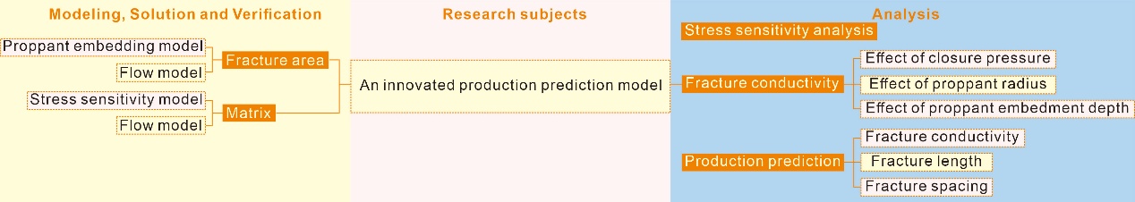 该论文以低渗气藏为对象,针对实际生产中,不同支撑剂变形阶段嵌入深度不确定和裂缝闭合导致的裂缝宽度难以计算,最终影响产能计算精准度的问题。首先,考虑基质区的应力敏感性,基于渗流理论、流体力学,分别建立了基质区应力敏感性模型、基质区流体流动模型、压裂区支撑剂嵌入模型、压裂区流体流动模型,并基于上述模型综合构建了考虑支撑剂嵌入的低渗气藏压裂水平井产能预测模型。其次,利用耦合求解法对该模型的产量进行了求解。最后,根据所建模型,分别对低渗气藏的应力敏感性、导流能力影响因素,产能影响因素三个方面进行了分析与讨论。结果证明,低渗气藏的基质区有较强的应力敏感性。在压裂设计中,需要综合考虑裂缝参数。压裂后,为维持产量的稳定释放,需选取粒径适宜的支撑剂,优化铺设层数。以达到指导压裂设计,维持压裂后效果,精准预测低渗气藏压裂水平井产量的目的。对低渗气藏产能的有效、稳定释放具有重要意义。