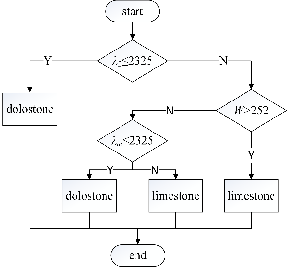 该论文针对当前碳酸盐岩高光谱识别中存在的数据冗余度高、传统方法效率低下等技术瓶颈,提出一种融合光谱知识与决策树模型的智能化识别方案,实现了碳酸盐岩岩性的高精度分类。所提方法首先采用连续谱去除方法对采集光谱进行预处理,然后结合光谱知识和机器学习提取特征。具体来说,通过光谱知识确定与碳酸盐岩密切相关的光谱区间,并提取光谱曲线中的关键波形特征,利用随机森林算法筛选出具备区分能力的特征,并通过阈值分析确定最佳分类判别式,构建决策树模型。最后,利用混淆矩阵评估模型性能,并与其他 5 种模型的分类精度进行对比分析。结果表明,基于吸收谷最低点波长、吸收带右肩波长和吸收带宽度顺序构建的决策树模型在分类精度上表现最佳,准确率达到95.57%。