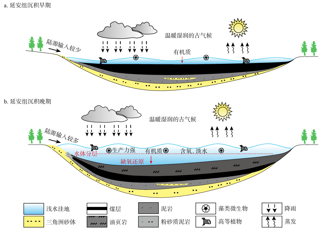 图4鄂尔多斯盆地延安组油页岩沉积演化模式图