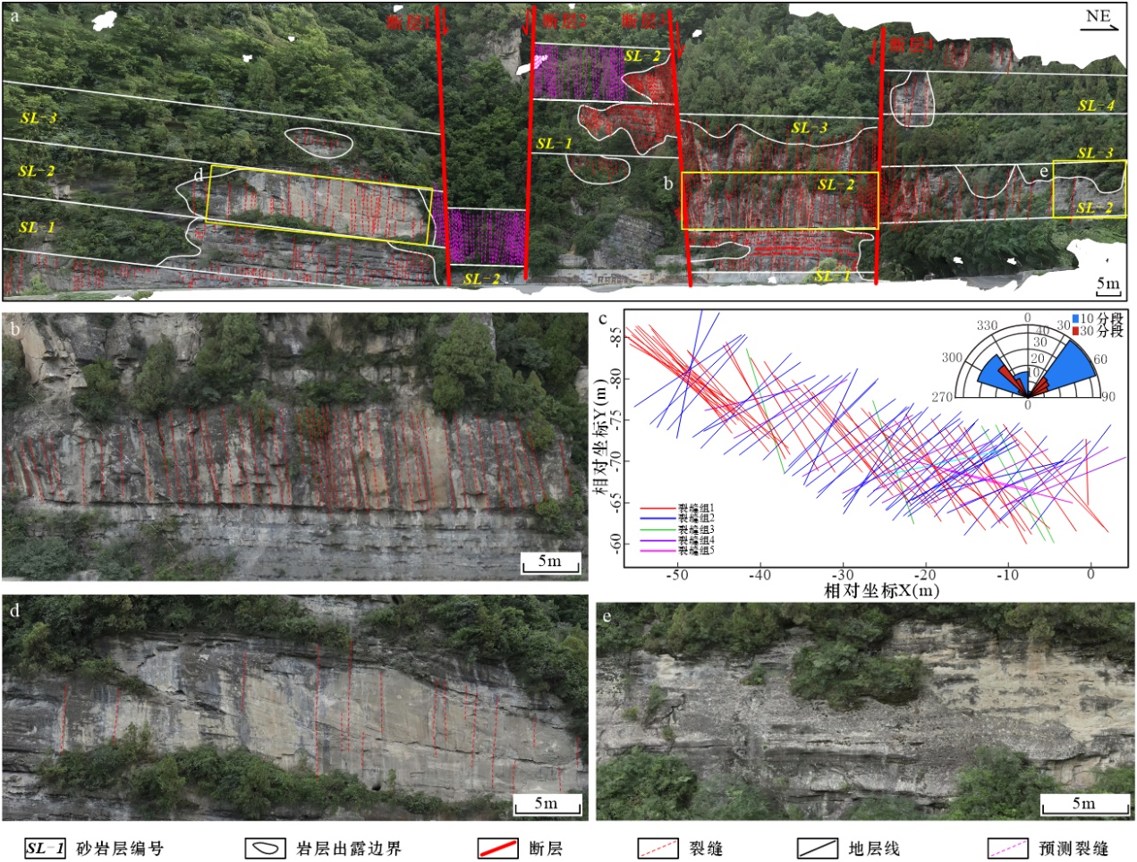该文通过人工测量和无人机测绘相结合的方法,系统采集了鄂尔多斯盆地南部旬邑地区延长组长8段典型断缝体野外露头,并结合前人研究成果,对研究区断缝体内部结构进行精细刻画。
