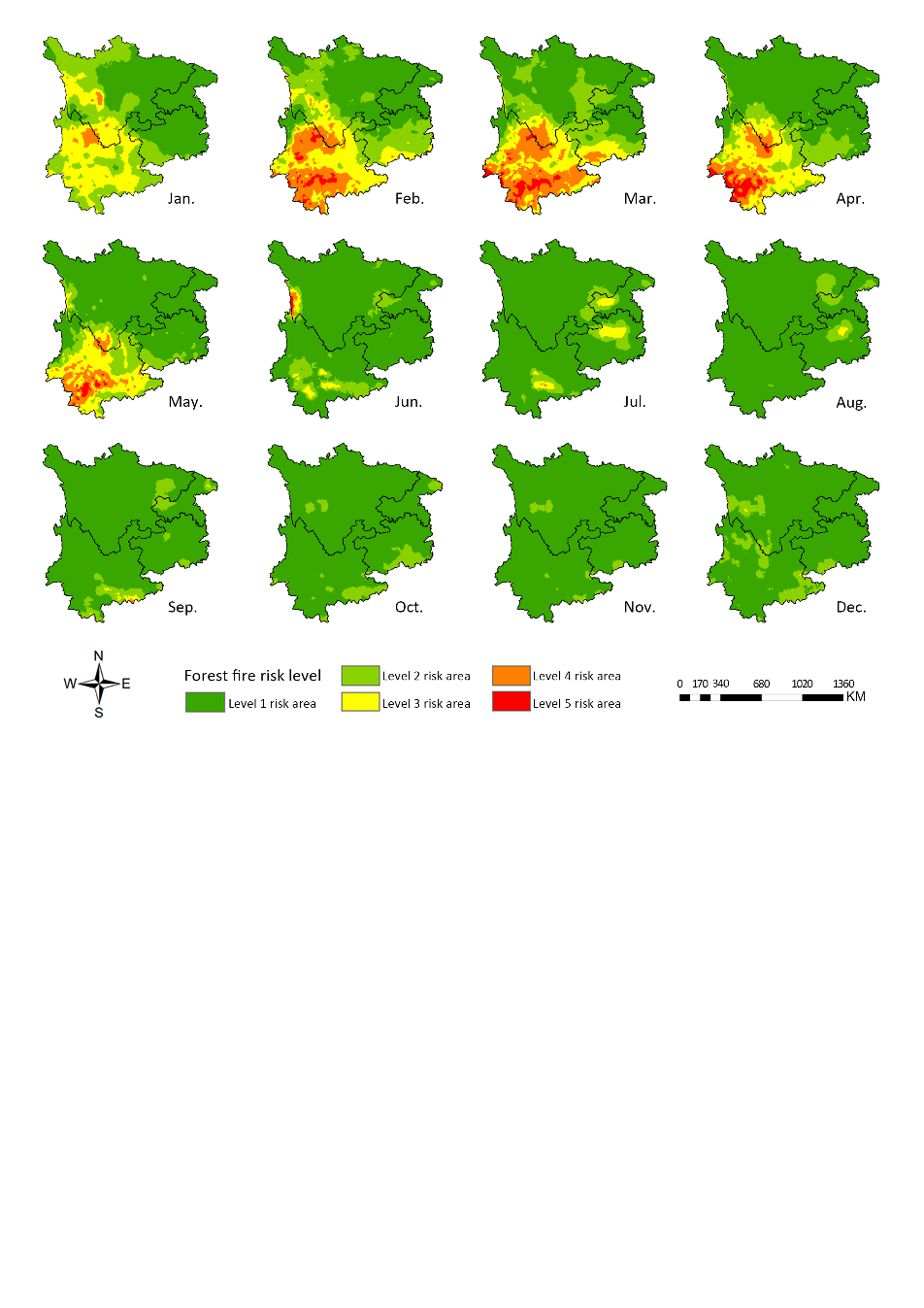 图1 逐月林火风险划分