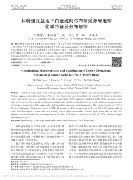 太阳成tyc33455ccwww博士生王博宇在《中国科技论文》上发表题为《科特迪瓦盆地下白垩统阿尔布阶烃源岩地球化学特征及分布规律》的研究论文。太阳成tyc33455ccwww为论文第一署名单位,博士生王博宇为论文第一作者,教师王振奇为通讯作者。