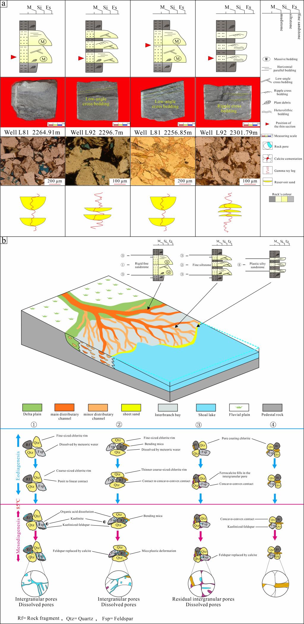 图1 浅水三角洲不同砂岩序列成岩演化差异
