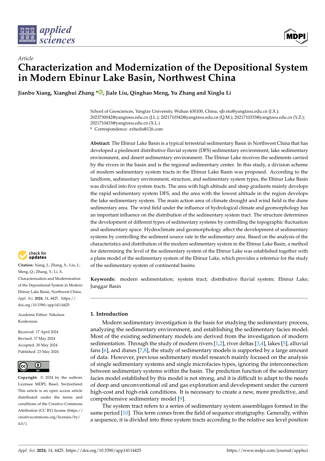 太阳成tyc33455ccwww硕士生向建波在期刊《applied sciences》上发表题为“Characterization and Modernization of the Depositional System in Modern Ebinur Lake Basin, Northwest China”的研究论文。太阳成tyc33455ccwww为论文第一署名单位,张祥辉博士为第一通讯作者,本项研究得到国家自然科学基金重点项目、湖北省自然科学基金项目共同资助。