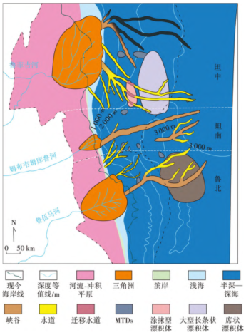 图1 东非海岸盆地第四系深水沉积平面展布特征