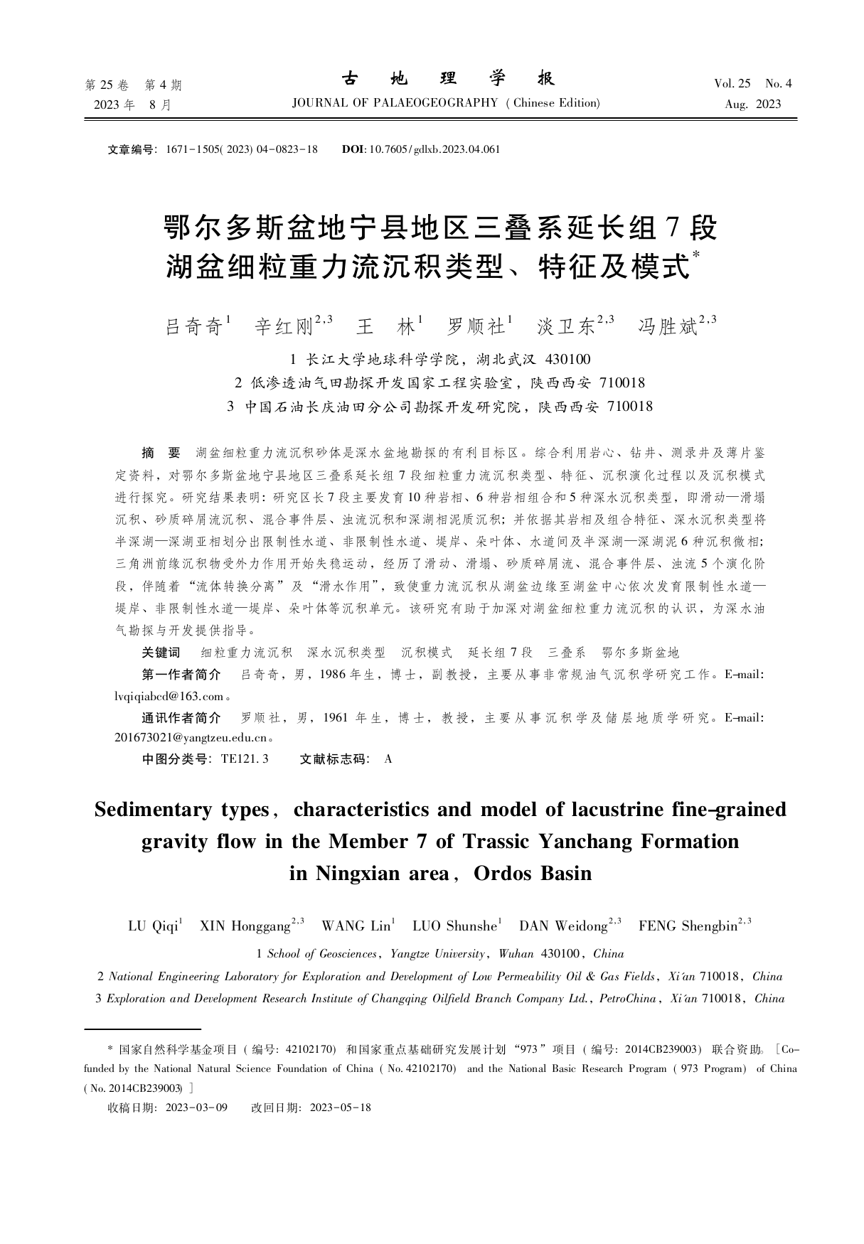 太阳成tyc33455ccwww教师吕奇奇副教授以第一作者身份在中文核心期刊《古地理学报》发表题为《鄂尔多斯盆地宁县地区三叠系延长组7段湖盆细粒重力流沉积类型、特征及模式》的研究论文,该项研究得到了国家自然科学基金项目和国家重点基础研究发展计划“973”项目的资助。
