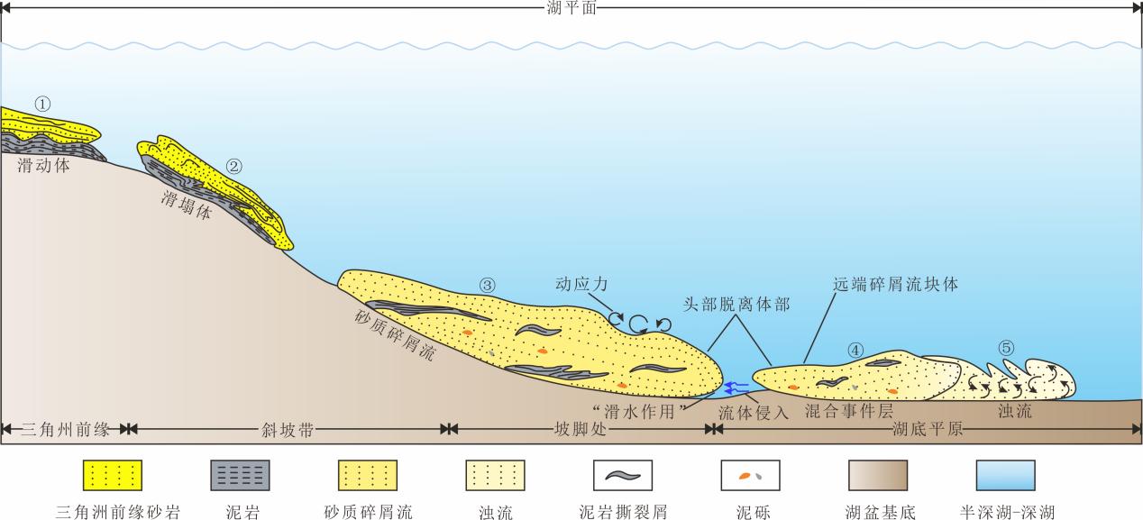 图2鄂尔多斯盆地宁县地区长7段湖盆细粒重力流沉积模式