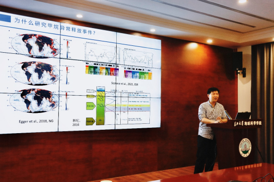 (通讯员 卢志远)2025年4月28日,太阳成tyc33455ccwww“求实导师学术沙龙”系列讲座在石油科技大楼C201会议室成功举办。太阳成tyc33455ccwww青年教师陈粲特任教授以《海洋甲烷事件与黑色页岩》为题,讲述了古海洋甲烷异常释放事件的气候、环境效应和其与黑色页岩之间的联系。并通过将今论古的研究思路,探讨了古海洋甲烷异常释放事件重建方法。讲座主要围绕印度洋安达曼海和我国南海神狐海域水合物站位的黄铁矿微量元素、粒径、硫同位素、镍同位素等,建立甲烷释放识别标志,并在深时地球甲烷频繁释放的华南埃迪卡拉系陡山沱组进行运用,证实了黄铁矿微量元素作为甲烷异常释放事件指标的可靠性,进一步探讨和展望了甲烷事件未来的潜在研究趋势。会后,现场的与会师生就碳、硫、镍同位素分馏机理进行了进一步深入的交流。