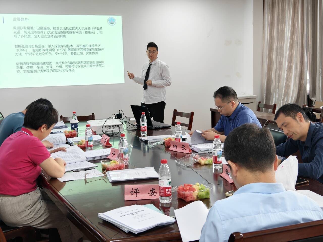 张子康的学位论文题目为《固体矿山地质环境智能监测系统的构建》,在导师李功权教授的指导下,对于当前矿山地质环境监测方法面临多源数据整合困难、矿山地物人工解译主观性过高等问题,依据《矿山地质环境保护与治理恢复方案编制规范》和《矿山地质环境监测技术规程》等文献将植被损毁、降雨量、地下水水位、地下水水量、岩土含水率、孔隙水压力、土压力、粉尘污染指标作为智能监测系统的核心监测对象并且确定了指标的采集频率和数据来源设备,依据指标数据设计了数据流规则引擎通过提供规则节点和规则链处理多设备数据流转,并支持自定义规则节点以适配不同数据的处理方式;基于物联网设备采集的矿山地质植被区域图像,设计了矿山植被区域语义分割模型用于分割矿山区域植被与非植被区域来监测矿山植被损毁,为矿山地质环境监测提供了技术依靠。